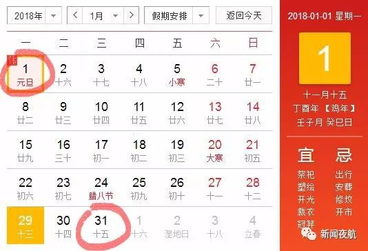 1月的第一天和最后一天都是农历的十五。