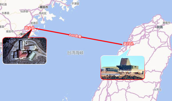 简氏防务周刊集团获得的卫星照片显示,中国已经在福建省惠安县北部建造了一个巨大的相控阵雷达,位于台湾铺路爪雷达的西北方向约240公里外。大陆的雷达天线可能在2008年前就开始建造,其体积与“铺路爪”类似。这部天线采用固定式天线,大约瞄准方位角144度方向。估计其能够覆盖正负60度的方位角,大陆的大型相控阵雷达理论上可以监视整个台湾海峡空域,也可以向南覆盖南中国海。