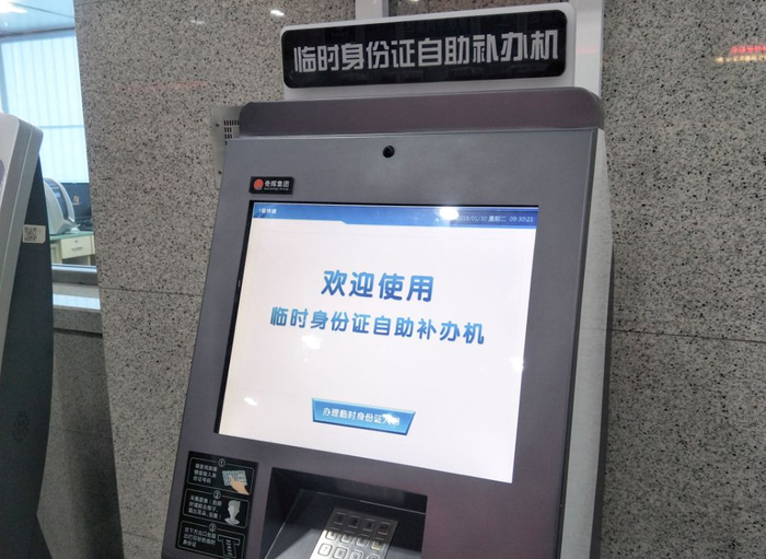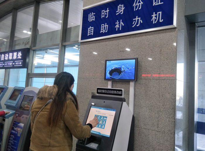 记者在现场发现,这台“临时身份证自助补办机”安放在长春站北口售票大厅内。其样式和不少服务窗口的“自助叫号机”差不多。