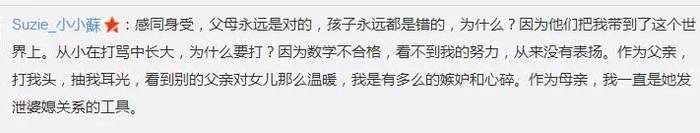 “感同身受,父母永远是对的,孩子永远都是错的,为什么,因为他们把我带到了这个世界。从小在打骂中长大,为什么要打?因为数学不合格……”