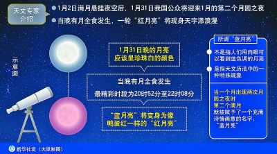 “举头望明月,低头思故乡。”“海上生明月,天涯共此时。”很多人都是吟诵这些脍炙人口的诗词长大,也因如此,对于寄托情思的月亮,大家也会格外关注。1月31日,月亮将出现蓝月亮、超级月亮和月全食三种不同的形态,尽管每年都会有几次特殊的有关月球的天象出现,但是在同一天可以看全三种月亮的情况却并不多见,这些奇景背后有什么有趣的科学原理?本报记者采访了中国科学院国家天文台研究员郑永春。