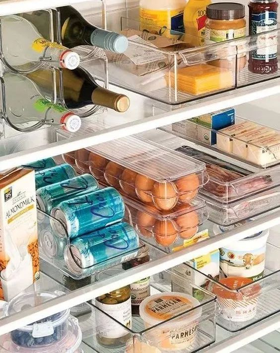 放在冰箱里的东西,靠着内壁放置,影响冰箱的使用功效,也更容易让冰箱结霜,东西黏在冰箱上,更加难以处理。如果冰箱空间足够的话,东西千万不要挨着内壁放置,保留一定的空隙,会少很多麻烦!用收纳盒、收纳袋来把物品分门别类好,是很好的习惯~
