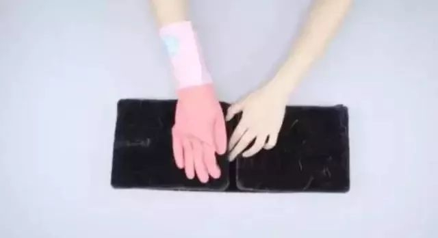 衣物上沾满了毛球,只需准备一双橡胶手套,顺着衣物往下扫,衣服上的杂毛就黏到手套上了。