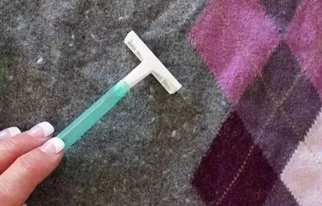 如果毛衣上有许多毛球,不妨将衣服放平,拿来一把剃须刀,贴近表面慢慢刮走表面的毛球。