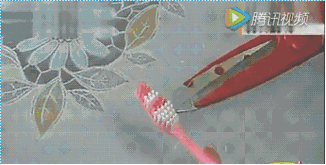 家中的废牙刷千万别乱扔,留下来去除衣物毛球可方便了!用剪刀在旧牙刷的一侧剪上几刀,使之参差不齐。