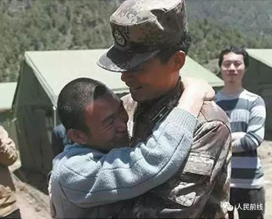 2015年4月30日,尼泊尔境内发生强震。原第13集团军某陆航旅官兵奉命驾驶直升机去接回中国水电工程人员。被接回的其中一名工程人员孟凡振紧紧拥抱一名军官。