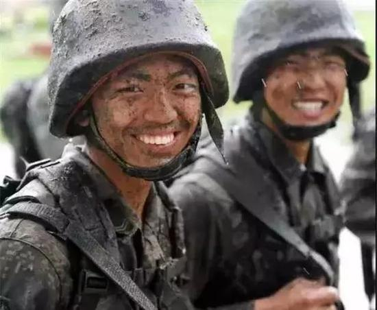 泥浆里训练了一天,他们满身泥巴,可笑容依然如此灿烂。
