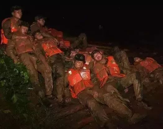 1998年那年洪水肆虐。没日没夜在抗洪大堤上奋斗的抗洪的战士们,累了就只能躺在泥巴地里歇歇。