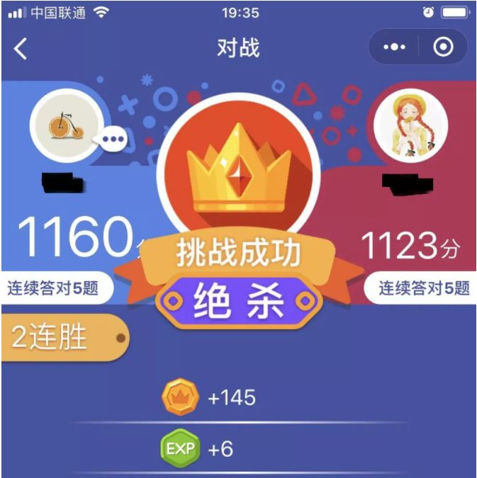“头脑王者”是一款知识性比拼的抢答式游戏,该微信小程序于2018年1月爆红。游戏采取双人答题得分竞争的玩法,每局两名玩家随机匹配进行答题,题目共有5道,根据答题所用时间来获得相应得分,5题答毕,分数高者获胜。