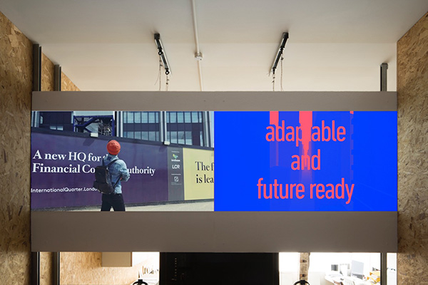“如果在第一个视频中,Woods代表了对伦敦房地产发展史的反思,在第二个视频中,引导观众的声音是数码的,无菌的,未来主义的。配音用第一人称叙述,似乎在评论漫步者的远征;这也许是他思想的副产品。在这里,朱晓闻开始把Hackney Wick地区正在进行的大规模发展与Woods在第一个视频中提出的问题联系起来。房产商的营销策略投射着一种令人向往的生活方式,然而关键问题是,谁可以负担得起?”