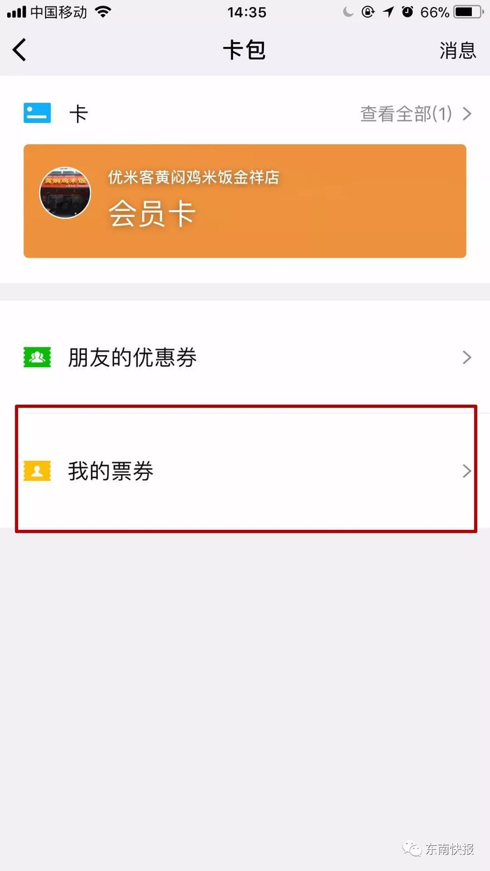 填写信息提交后,即可在微信卡包下面的“我的票券”一栏看到电子发票。