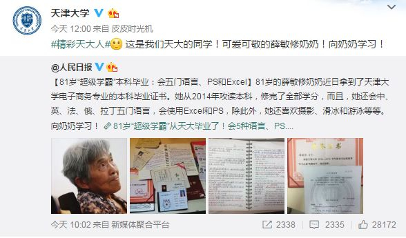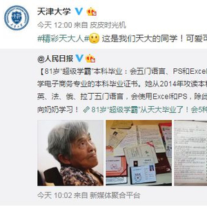 今天,天津大学的学霸奶奶火了!