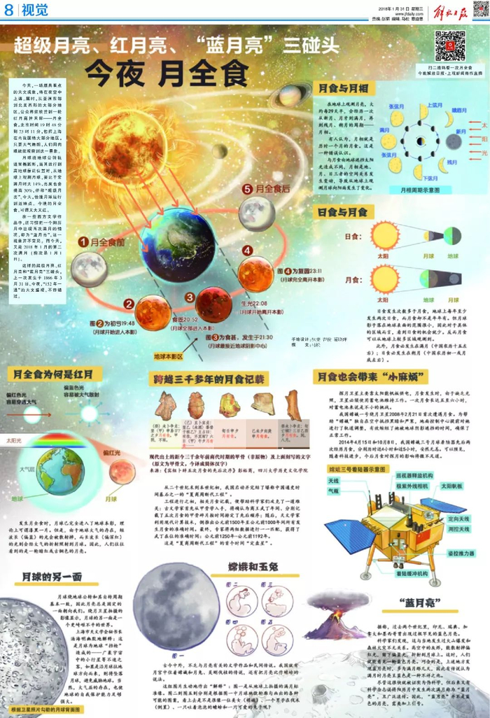作为2018年天象开门大戏,1月31日晚间即将上演的月全食颇具看点——超级月亮、红月亮、“蓝月亮”三碰头。上一次发生这样的巧合,是152年前的1866年3月31日!
