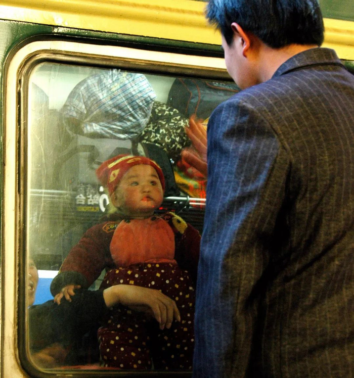 ▲ 2005年2月2日,北京。离别的人们难舍难分,孩子的眼神中也满是别离的愁绪。(图|视觉中国)