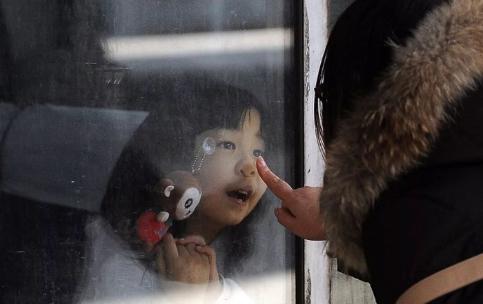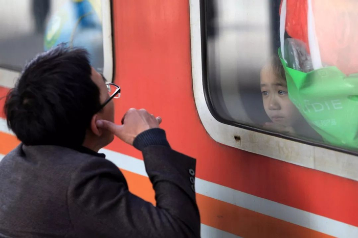 ▲ 2011年1月26日,北京站,父女隔着窗户对视,眼神里除了不舍还是不舍。 (图|视觉中国)