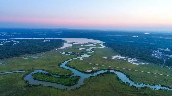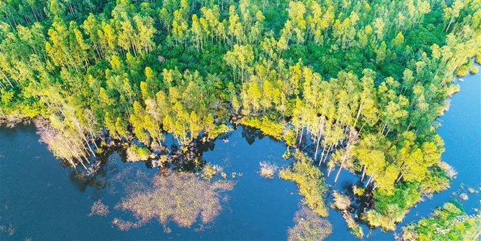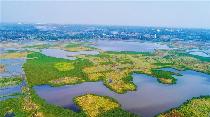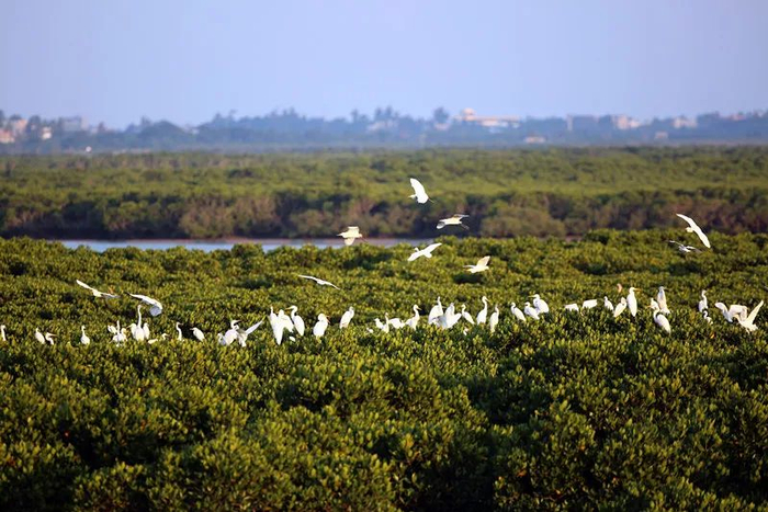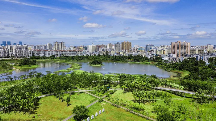 海口有着众多星罗棋布、特色各异的湿地、山水、林田、湖海,形成了“一轴(南渡江流域)、一带(近海与海岸带)、两区(东寨港红树林、羊山地区湿地资源价值核心区)、多点(凤潭水库、铁炉水库等散点分布的重要湿地板块)”的市域湿地资源空间结构分布格局,湿地与城市更加融合。
