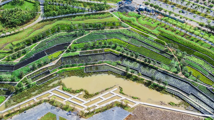 美舍河是是纵贯海口南北的一条主要河流,海口用不到7个月的时间,在3.5万平米的垃圾堆填场上建成全国最大的梯田湿地,其中1.4万平米梯田湿地具有八级净水功能,目前日处理污水能力5000吨。同时,成功引种红树林,既美化了景观,净化了水体,又消除了污染。如今,沿岸居民告别了20年不敢开窗的历史,周边商业圈也随之兴旺,美舍河已成为水体治理示范样板和典范,成为市民和游客休闲的首选地。2017年9月,美舍河成功获批第十七批全国“国家水利风景区”。