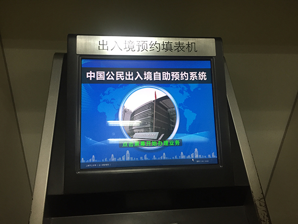 上海市公安局出入境管理局办证大厅的自助填表机。