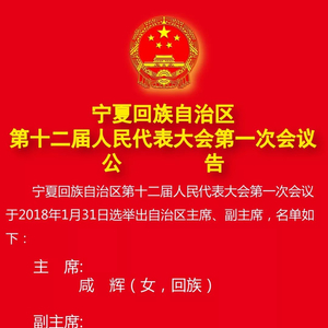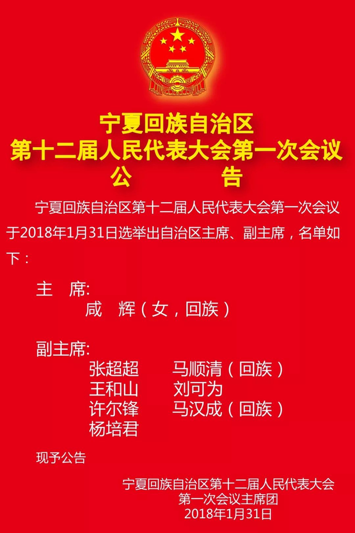 咸辉,女,回族,1958年3月出生,甘肃定西人,1976年12月加入中国共产党,1975年3月参加工作,兰州大学管理学院行政管理专业毕业,在职研究生学历,管理学博士。现任十九届中央委员,自治区党委副书记,自治区政府主席。