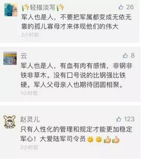 并且指出:“对于父母生病不回家、妻子生产不照顾、家庭有难不帮助的个别官兵,不但不表扬、不宣扬,而且还要对他的真实品德进行考察。”