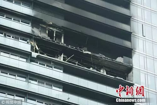 图为起火大楼。图片来源:视觉中国