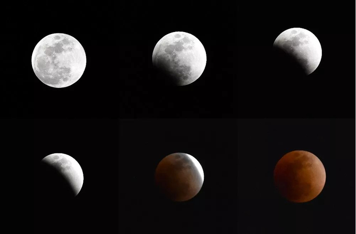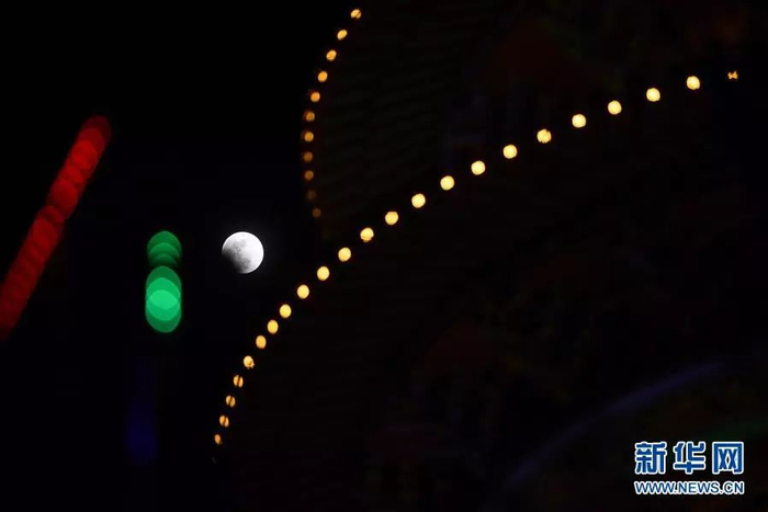 在济南拍摄的从圆月到月全食过程的拼图照片