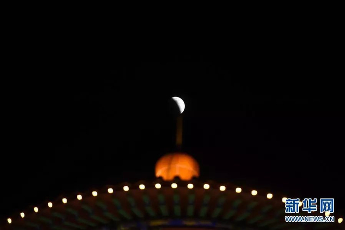 图为在吉林长春拍摄的月全食初亏(1月31日摄)。新华社记者 张楠 摄