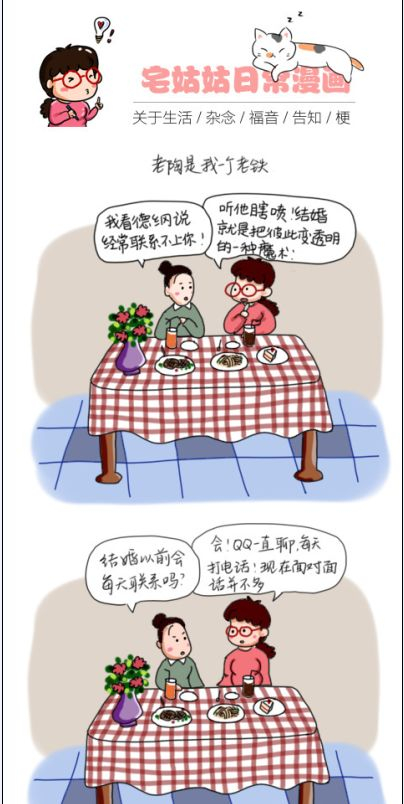 据了解,宅姑姑本身就是个自由创业者,平时做一些创意集市,在微博、微信公共号上发一些自己制作的生活漫画。