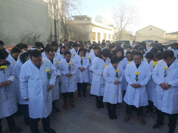 廊坊城南医院员工集体悼念院长张毅。 受访者供图