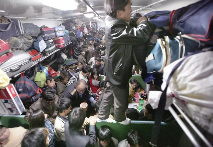 △2005年1月26日,由杭州始发开往贵阳的L199次列车,由于大量民工返乡过年,这趟列车所有车厢爆满。