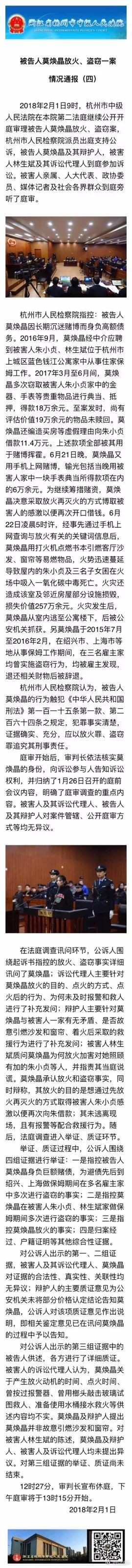 附:今天上午和下午“杭州保姆纵火案”庭审情况通报全文: