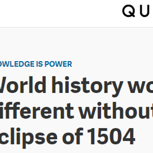 这正是1504年发生在现在的牙买加的事情,当时西班牙探险家克里斯托弗·哥伦布编造了一个骗局。正如邓肯·斯蒂尔在他的著作《蚀:改变历史的天象》中所说,这个骗局改变了世界的未来。如果没有这场骗局,人们所知的美洲殖民化——包括殖民化所引发的一切,如屠杀无可计数的原住民——可能就不会发生了。