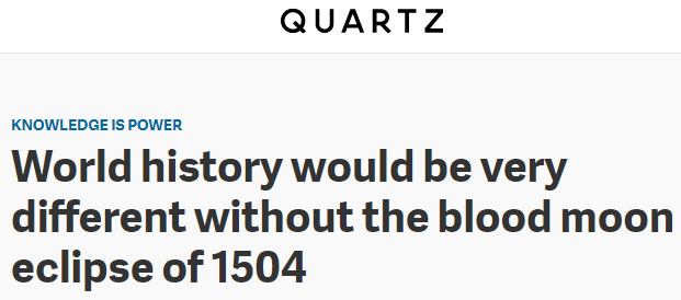 美媒称,如果没有1504年的红月食事件,世界历史将会大不同。