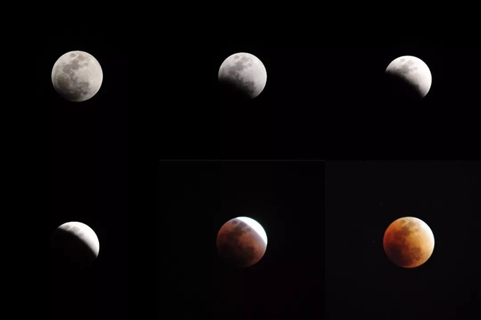 昨晚月全食形成的大致过程。记者彭年 摄