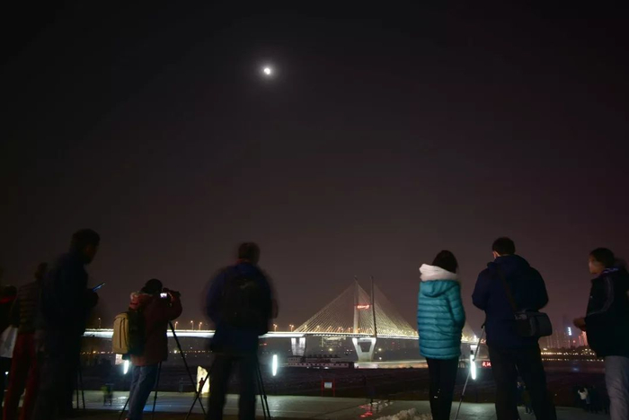 昨晚武汉人追看“超级蓝血月全食”