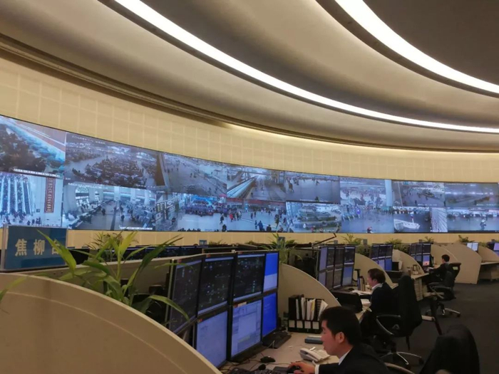 中铁武汉局集团总调度室内,高清监控可以记录各车站实时信息。记者张全录 摄