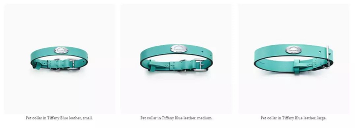 除了天价回形针,Tiffany还推出两个颜色,三种尺寸蓝狗圈,价格在1400-2000块左右,任狗挑选。