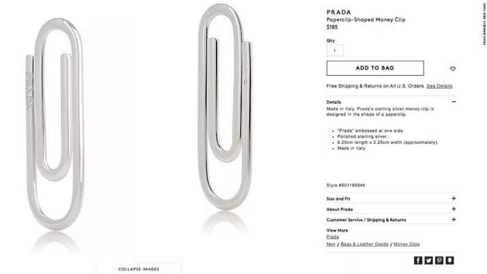 除了体育器材的比拼,大牌还喜欢在小物件上较劲。比如 PRADA 这款售价1200 RMB的回形针。