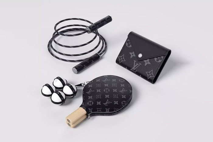 前不久推出了一套乒乓球套装,球拍的底部及乒乓球均打上了 Louis Vuitton 的标记,球拍套采用品牌具代表性的黑灰色 Eclipse Monogram,售价18000块,感觉打乒乓球会手震。