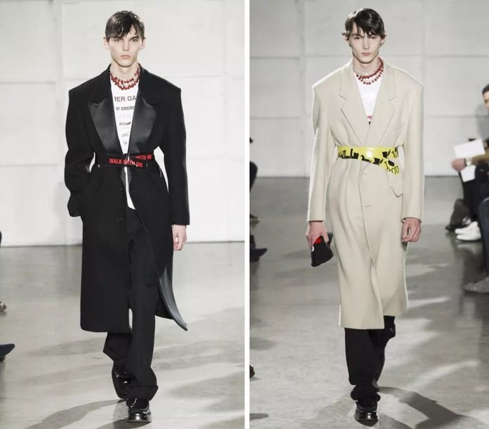 开头提到的Raf Simons 在2017秋冬男装秀场上,模特的“腰带”蛮抢眼的,仔细一看其实它是胶带......