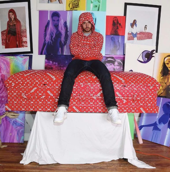 说起这类脑洞有点大的单品,第一个想到的就是潮牌Supreme,这个价值10亿美金的红底白字logo,印在任何东西上都能瞬间拉高逼格。