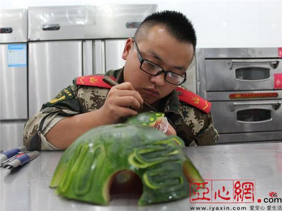 在日常工作中,他不仅在饭菜质量上下功夫,更注意抓食品的卫生问题,从保持厨房工作环境的卫生整洁开始,再到严把食品采购关,饭前饭后卫生问题常常逃不出他的“火眼金睛”。让官兵们喝上放心的水,吃上暖心的饭菜就是他最大的满足。