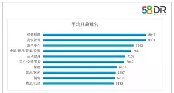 报告以求职总体人群和95后新生代求职主力军的自然特征、社会特征、偏好特征和求职特征等维度进行了分析研究。数据还显示, 2017第三季度收入最高的Top10行业为保健按摩、高级管理、房产中介、金融/银行/证券/投资、运动健身、司机/交通服务、保险、娱乐/休闲、销售、物流/仓储。