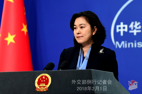 原标题:2018年2月1日外交部发言人华春莹主持例行记者会