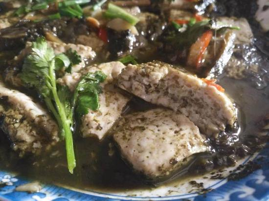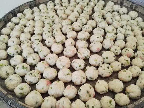 安徽宣城等地过年都有一道菜:炸圆子。或是糯米和上好的猪肉和成的糯米圆子,或是把用藕搅成茸捏成的藕圆子,还有肉圆子、牛肉圆子等等。炸圆子是年三十前的重要准备工作。刚炸好的圆子,外酥内软,油香四溢。过年要吃时,就把它们放在饭上蒸一蒸再上桌,这时滋味全然不同,尤其是糯米圆子,蒸后咬起来颇有嚼劲,糯弹无比。(图为糯米圆子)