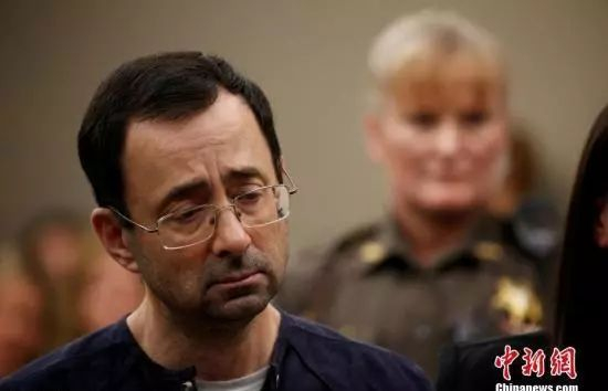 当地时间2018年1月24日,美国密歇根州兰辛,美国奥运体操队前队医拉里·纳萨尔因性侵被判处40-175年监禁。(图片来源:中国新闻网)