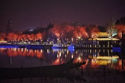 大明湖北岸灯光璀璨,美丽迷人。