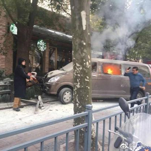 据附近目击者称,肇事面包车大约在8时55分从新昌路开上南京西路,车身冒火,径直撞上星巴克门前的护栏。车上约有六人受伤,已被送医救治。8时58分左右,消防车到达现场灭火。