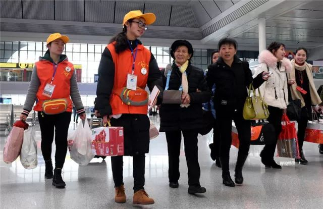 随处可见春运志愿者们。