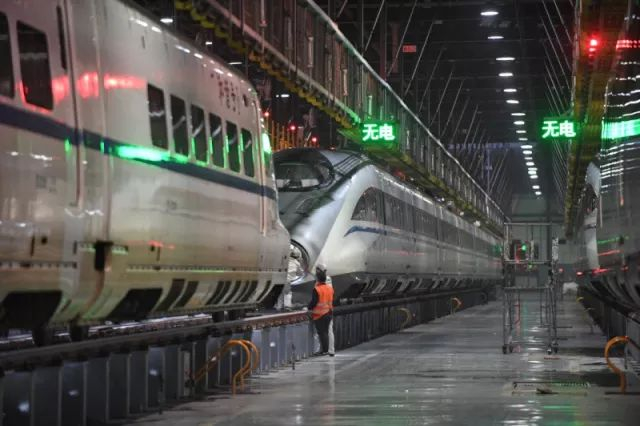 对高铁和动车列车进行维护。